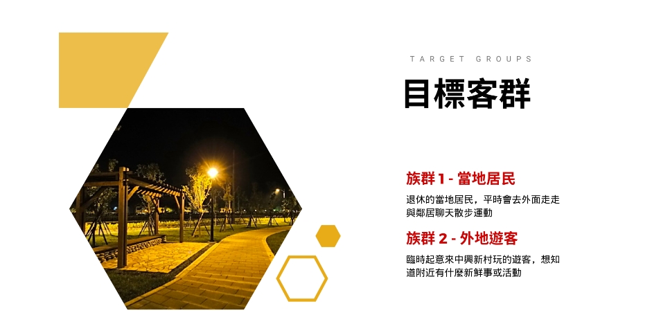 中興新村屬於早期都市規劃,有些機能已不符現代需求。為提升當地居民和遊客的旅遊品質,我們將計畫開發一個活動推播系統,